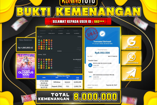 Bukti JackPot Slot Member KUNINGTOTO 17 January 2026 Gates Of Olympus 1000 Memenangkan Jackpot Permainan Slot online sangat populer di…